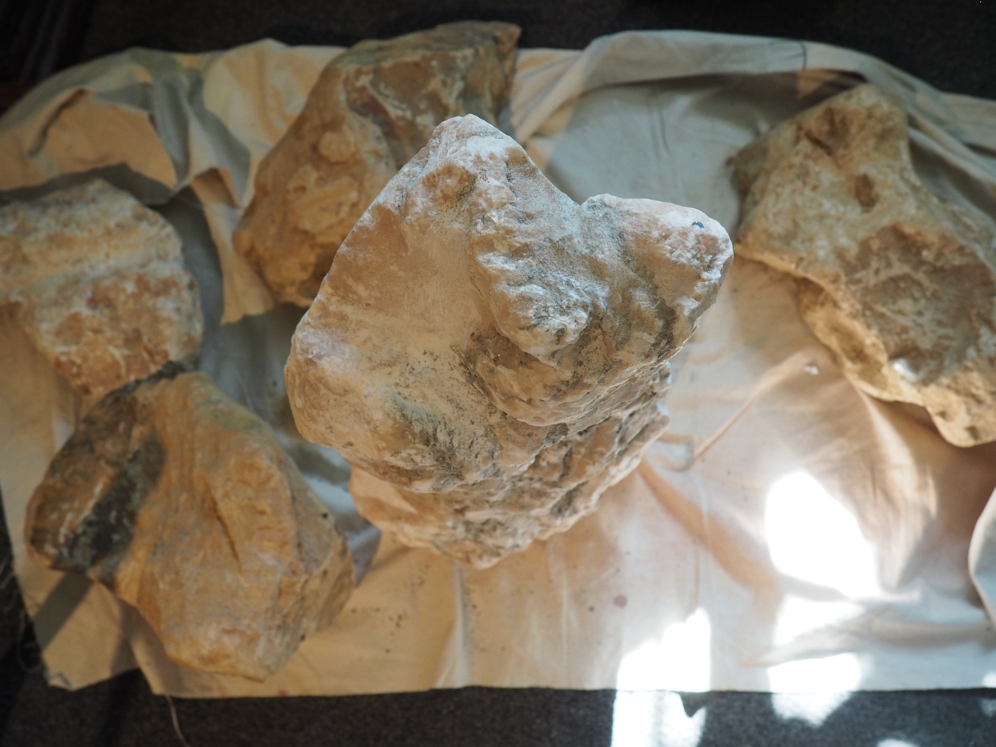 five unfinished sculptures in the back